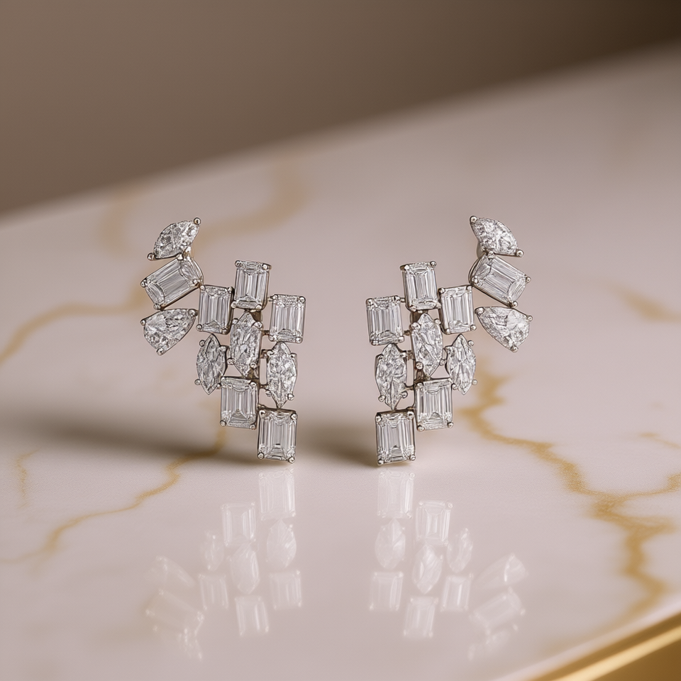 E2184 White Gold Diamond Earrings Emerald Cut Natural for Certified Luxury Wholesale Wedding Women's Jewelry