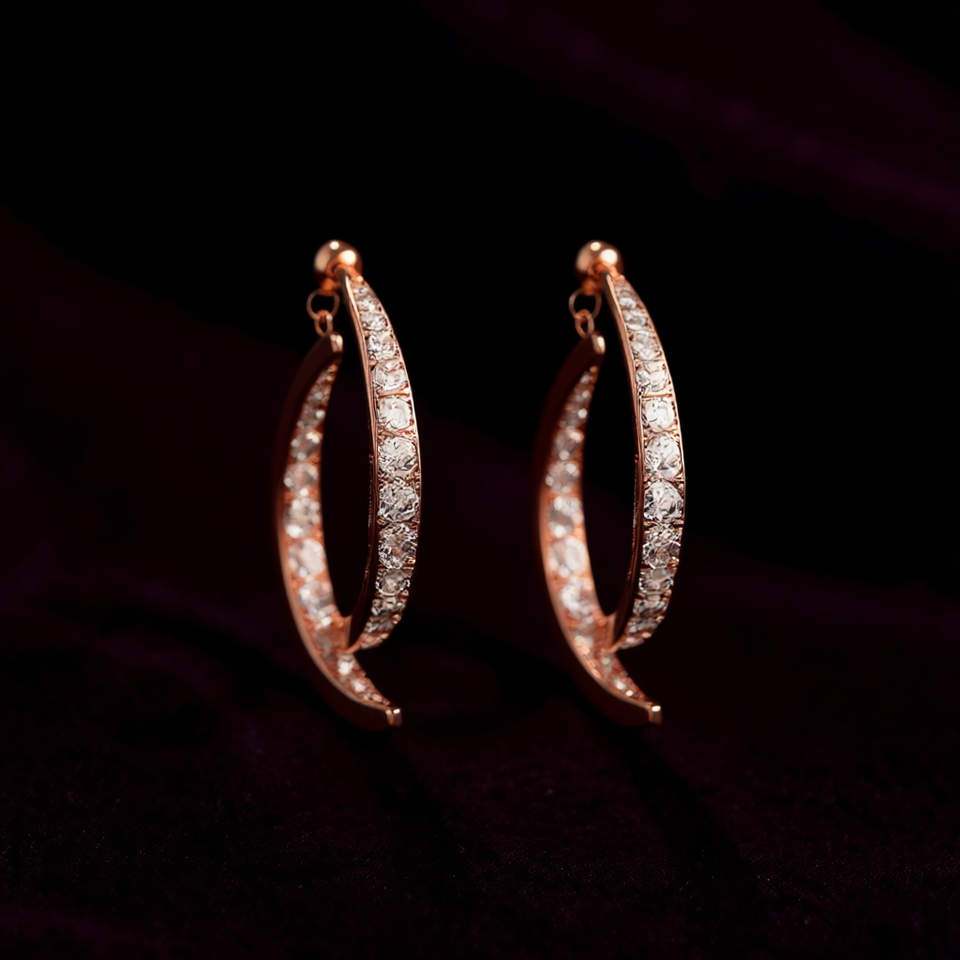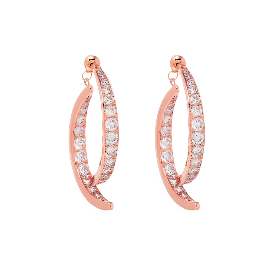 Orecchini a Cerchio E2198 in Oro Rosa con Cristalli e Strass, Incastonatura a Canale, Lussuosi per Uso Quotidiano Femminile