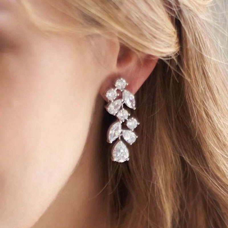 E2205 Orecchini in oro bianco con diamanti taglio a pera naturali classici da donna
