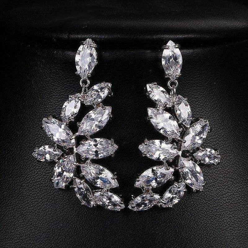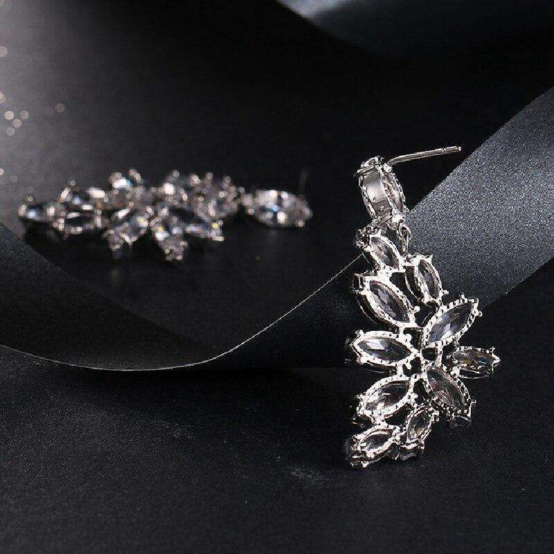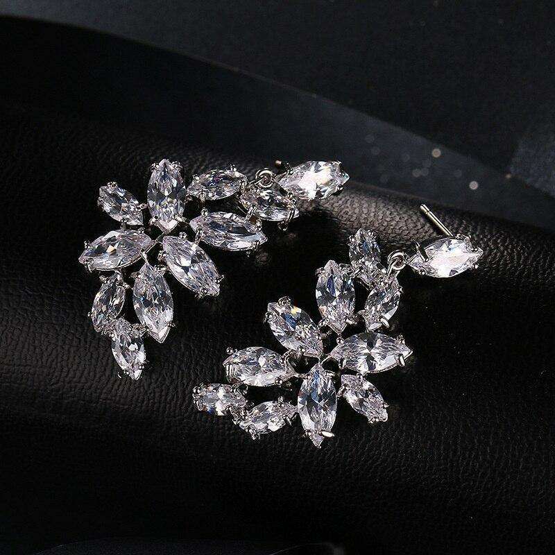 E2210 White Gold Drop Earrings Marquise Cut Crystal Rhinestone Flower Design Claw Setting Women's Wedding Fashion Jewelry
