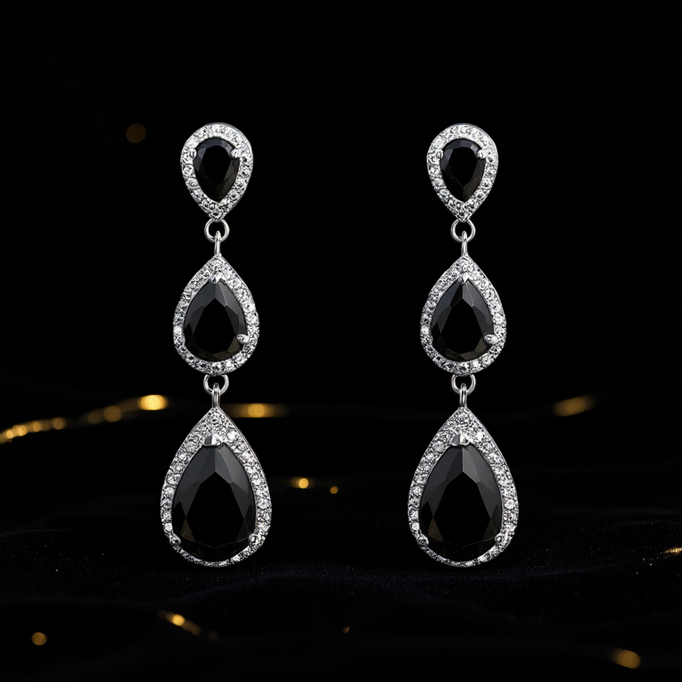 E2221 Black Crystal Drop Earrings Women's 925 Silver Plated Water Drop Shape Party Classic Style Jewelry