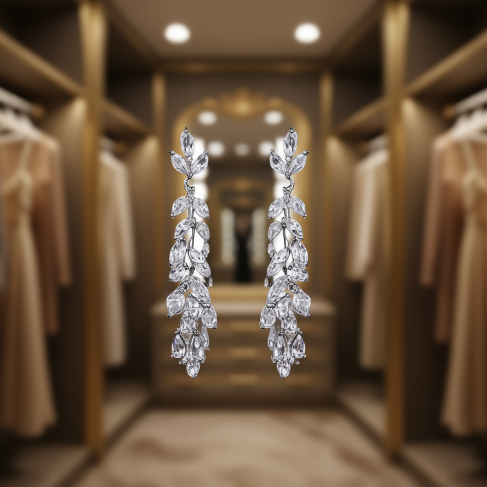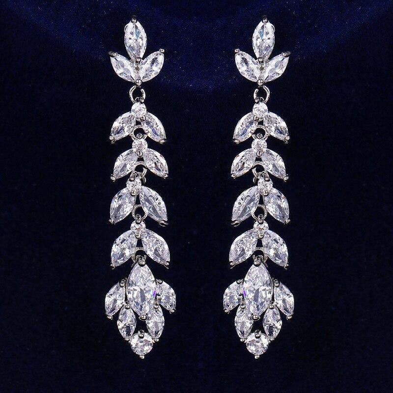 E2231 White Gold Chandelier Earrings Marquise Cut Crystal Rhinestone Flower Design Claw Setting Women's Wedding Fashion Jewelry