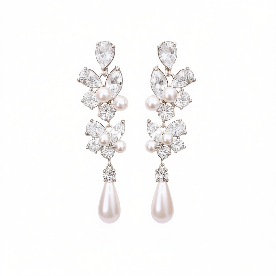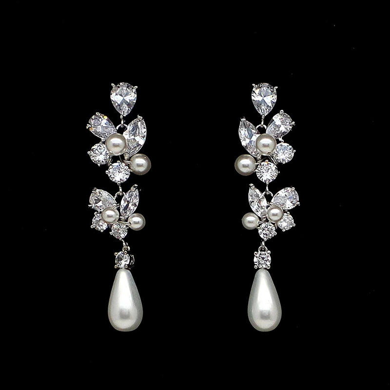 E2233 White Gold Flower Chandelier Earrings Crystal Rhinestone Wedding Women's Romantic Jewelry