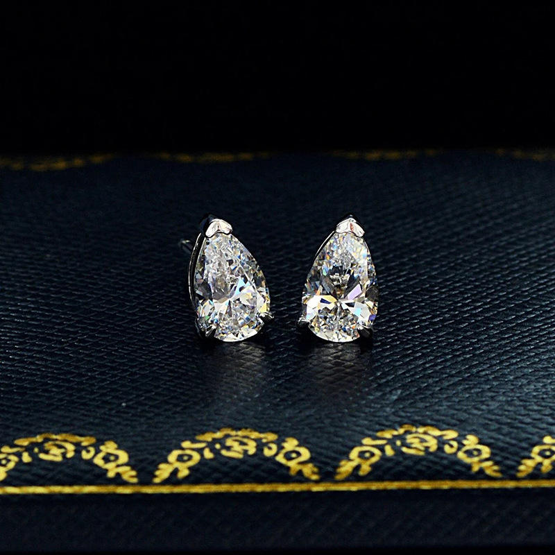 E2242 White Gold Diamond Earrings Pear Cut Natural Diamond Women's Classic Style Jewelry