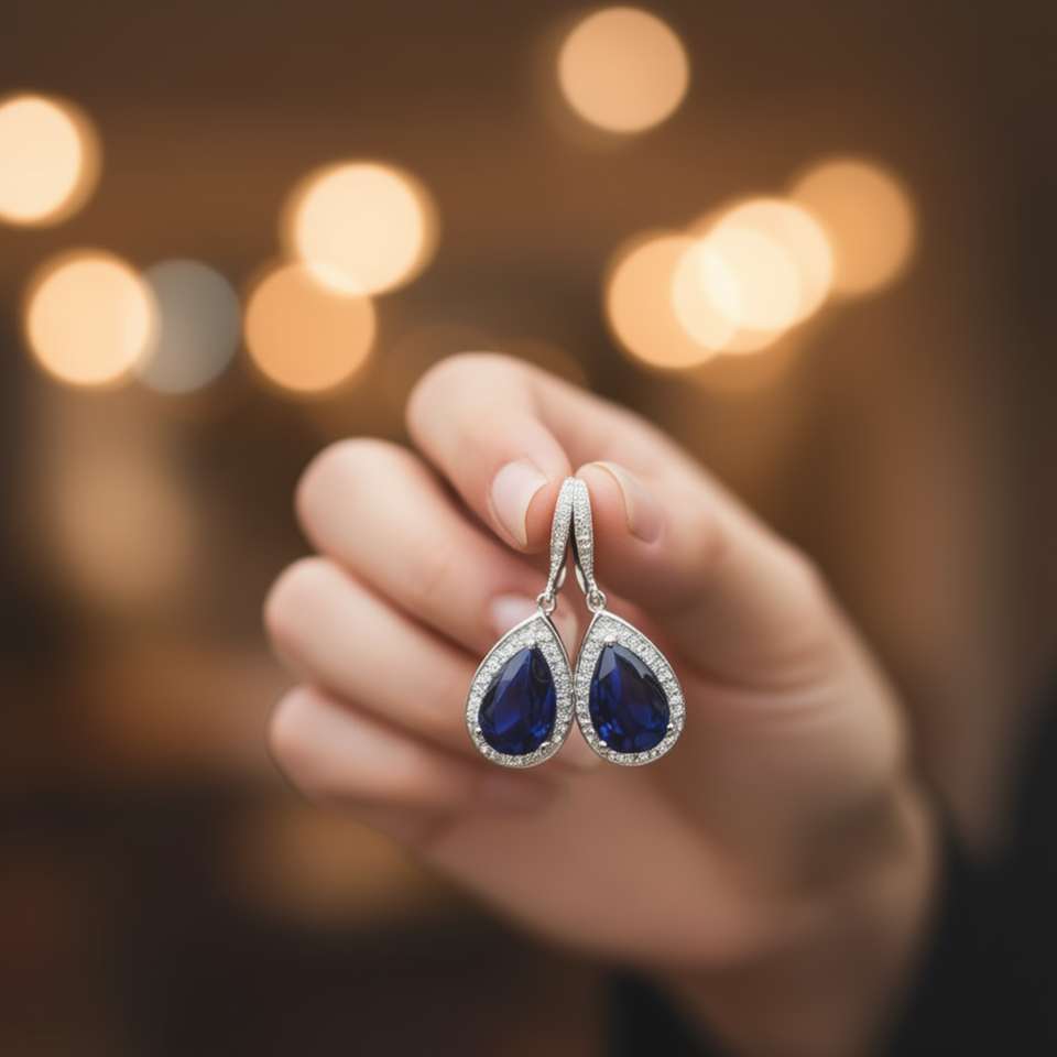 E2264 Blue Drop Earrings Women's Classic Pear Cut Crystal Rhinestone Wedding Jewelry Zinc Alloy Bezel Setting Water Drop Shape