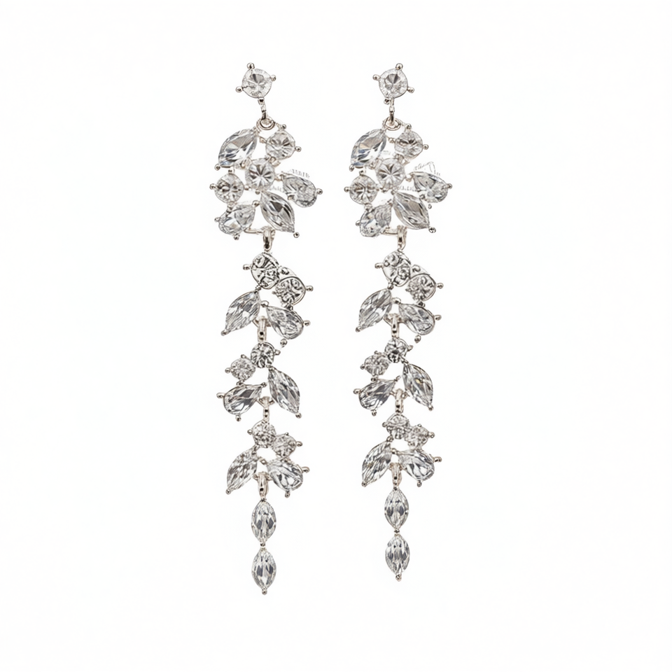 E2289 White Gold Chandelier Earrings Crystal Rhinestone Flower Design Luxury Women's Wedding Jewelry