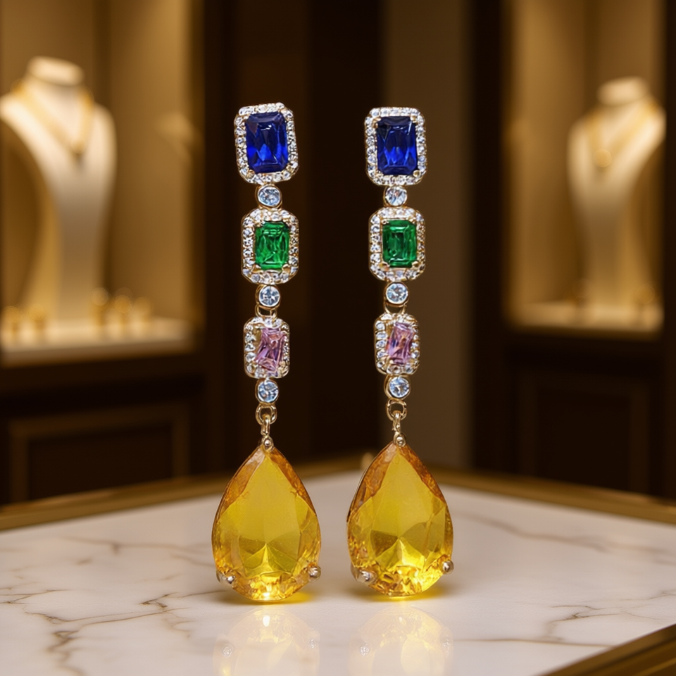 E2294 Gold Plated Drop Earrings With Citrine Water Drop Shape Bezel Setting Luxury Women's Party Crystal Jewelry