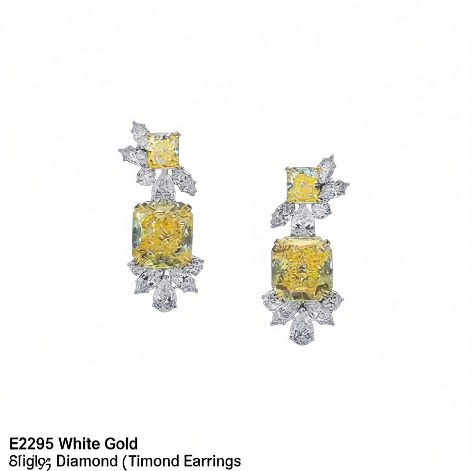Orecchini E2295 in Oro Bianco con Diamanti Taglio Principessa Giallo Naturale Certificato GIA Gioielli da Sposa per Donna