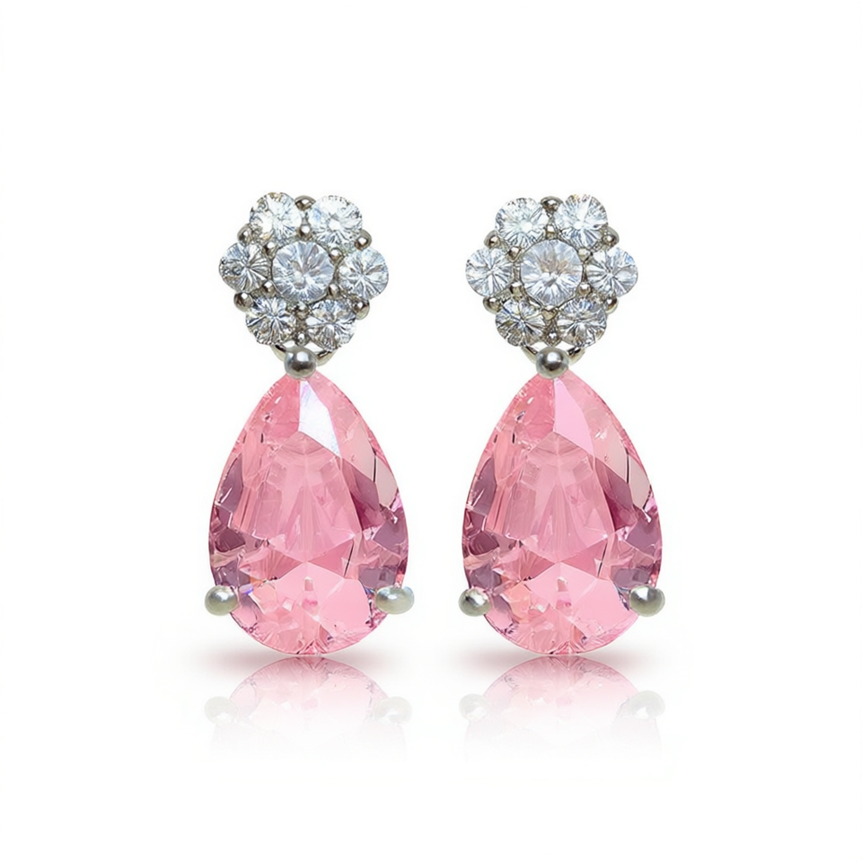E2321 Pink Crystal Drop Earrings Flower Shape Claw Setting Romantic Women's Wedding Jewelry