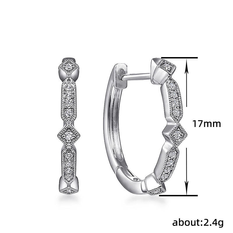 E2350 White Gold Diamond Hoop Earrings For Women Classic Everyday Wear 14K Solid Gold With Natural Diamonds G Color