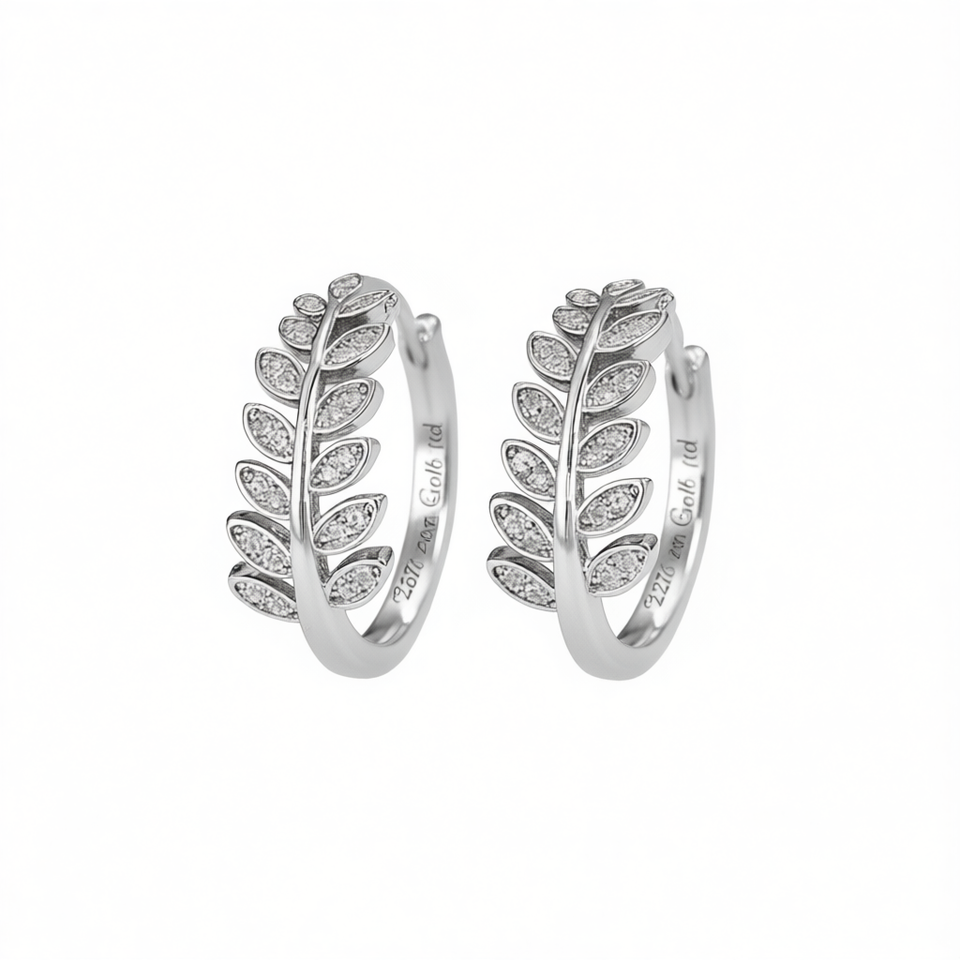 E2376 Gold Hoop Earrings 22k Gold Plated Marquise Zircon Channel Setting Women's Classic Plant Design Everyday Wear