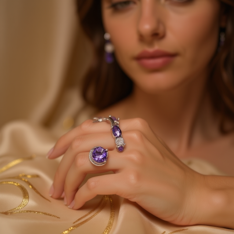 E2406 Purple Women's White Gold Diamond Earrings Round Brilliant Cut Natural D Color Classic Wedding Jewelry