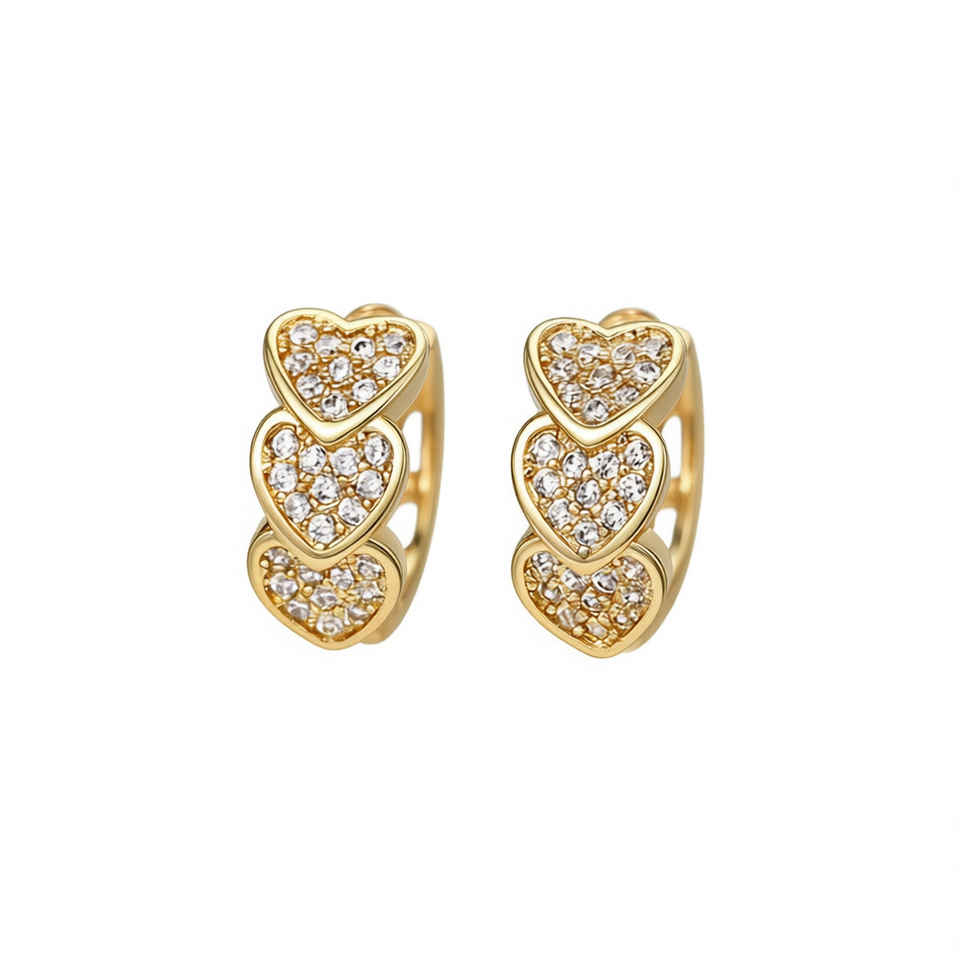 Orecchini a Cerchio E2425 con Cuore Dorato e Cristalli, Gioielli Romantici da Donna per Uso Quotidiano, Placcati in Oro con Micro Incastonature