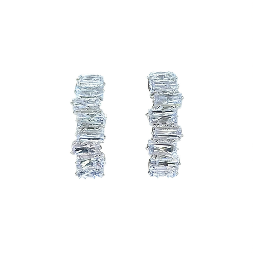 E2453 White Gold Hoop Earrings Crystal Rhinestone Channel Setting Geometric Luxury Women's Jewelry