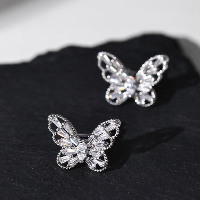 E2462 White Gold Butterfly Cuff Earrings With Rhinestones For Women Romantic Style Fashion Jewelry