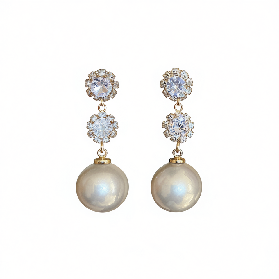 Orecchini Pendenti E2496 in Oro con Cristalli e Strass a Forma di Fiore, Gioielli Classici da Donna per Matrimonio