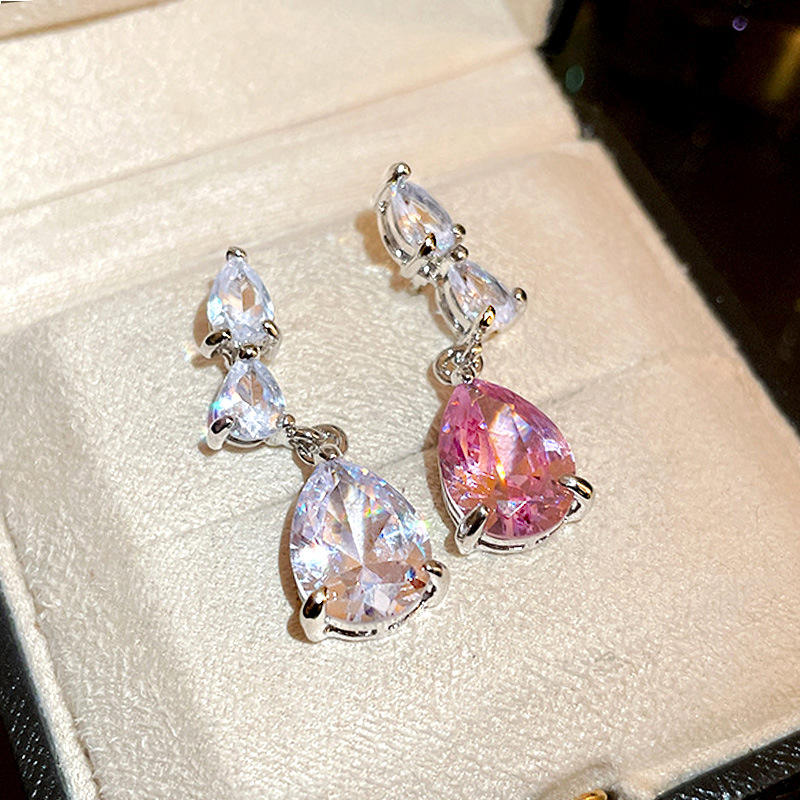 E2497 White Gold Crystal Drop Earrings Water Drop Shape Claw Setting Women's Wedding Classic Style