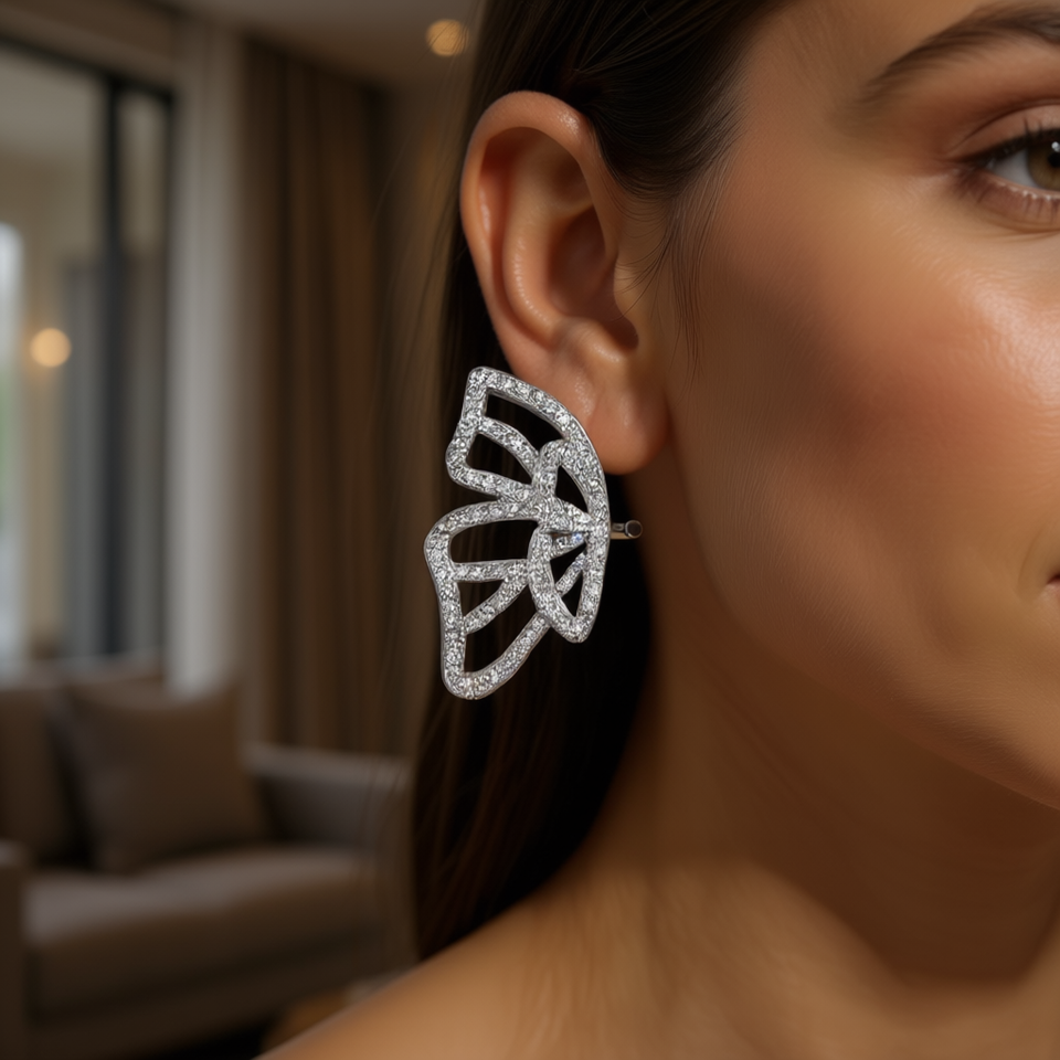 Orecchini a clip a forma di farfalla in oro bianco E2535 con pavé di diamanti rotondi, gioielli di lusso da donna.