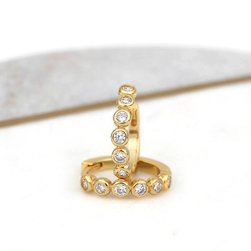 E2545 Gold Plated Cuff Earrings Round Brilliant Cut Geometric Design Bezel Setting Unisex Trendy Fashion Jewelry