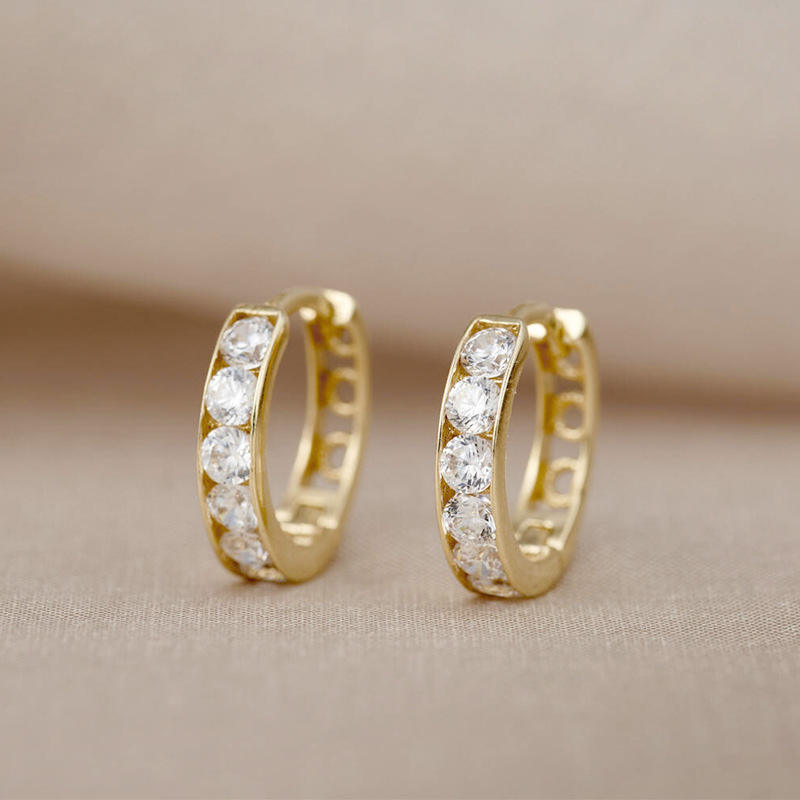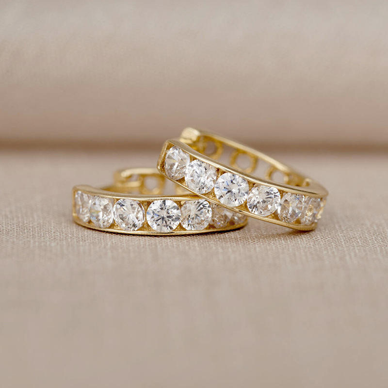 E2573 Gold Plated Huggie Earrings With Round Brilliant Cut Stones Channel Setting Women's Classic Fashion Jewelry