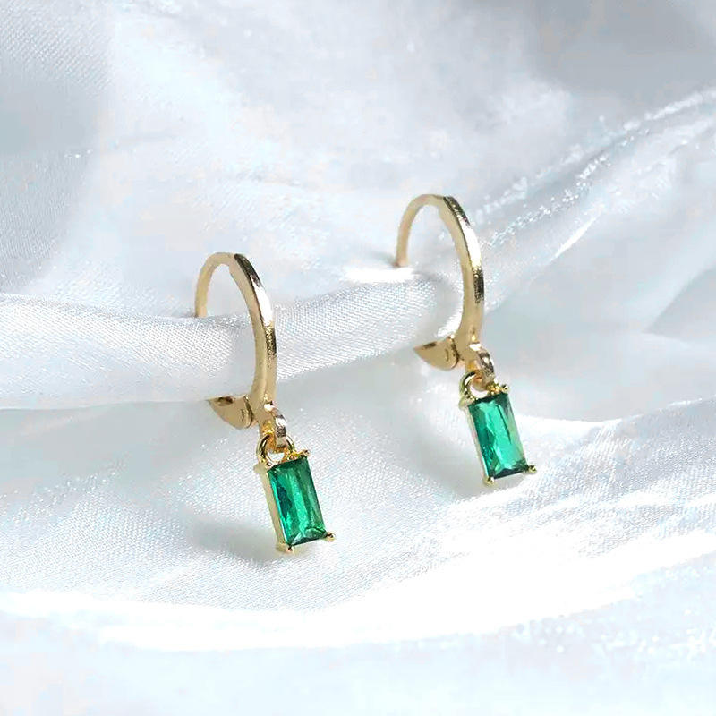 E2574 Gold Plated Hoop Earrings With Emerald Cut Green Gemstone Bezel Set Classic Style Women's Fine Dangle Earrings