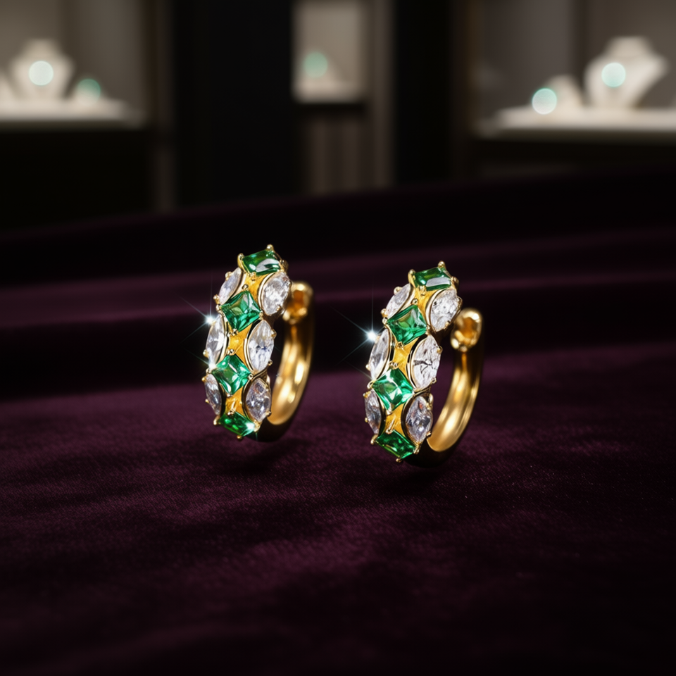 E2595 Gold Huggie Earrings Women's Emerald Cut Zircon Geometric Trendy Party Jewelry Alloy Claw Setting