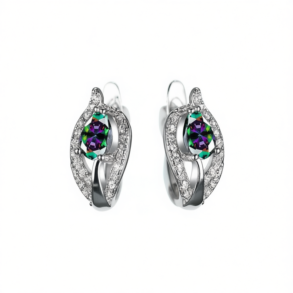 E2599 Rainbow Quartz Huggie Earrings 925 Silver Geometric Crystal Women's Party Jewelry