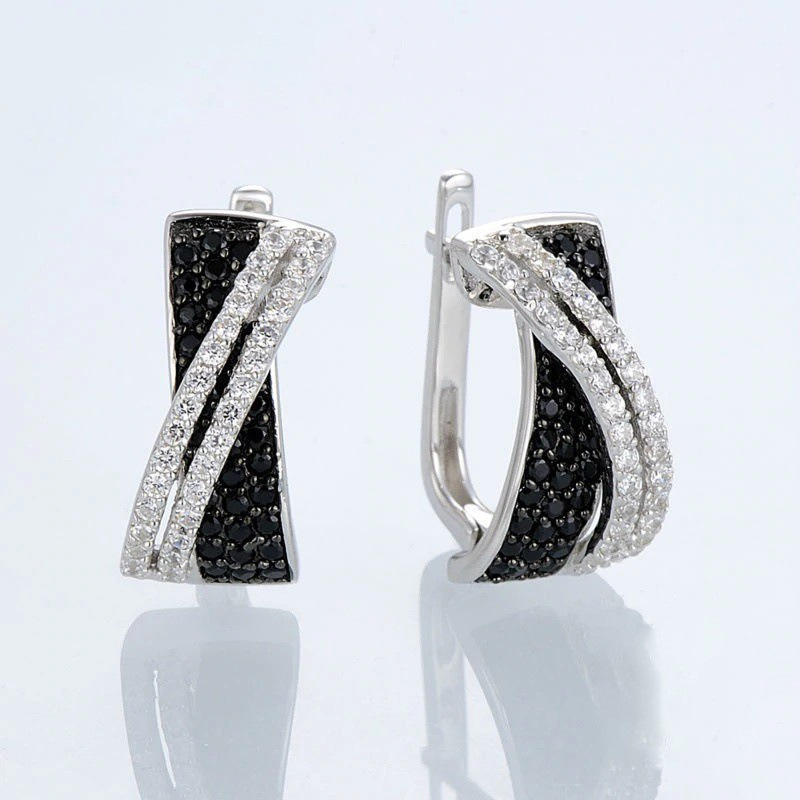 Orecchini a Cerchio Bicolore E2612 in Argento 925 con Diamanti Taglio Brillante Rotondo, Montatura Geometrica a Canale, per Uso Quotidiano Femminile