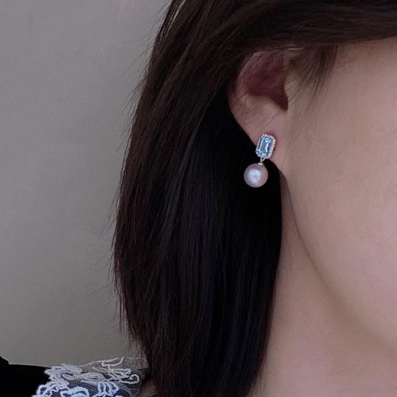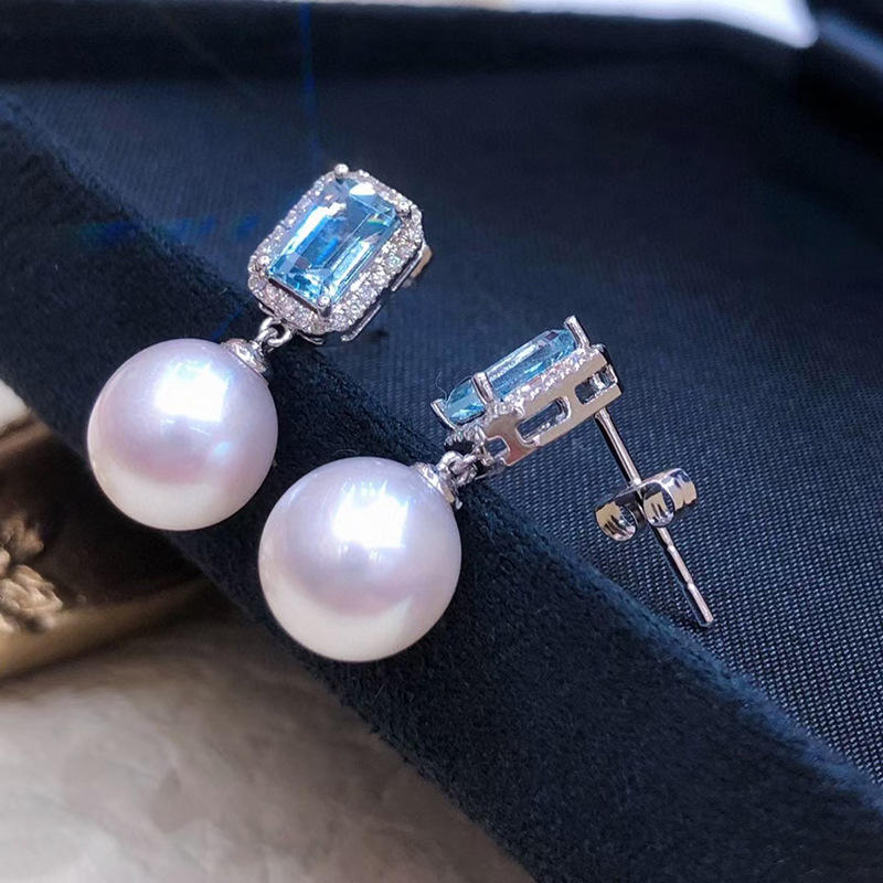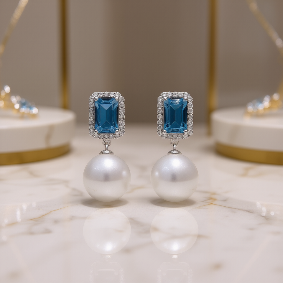 E2622 Orecchini pendenti in oro bianco con topazio e perle finte, orecchini classici da donna per feste, gioielli alla moda
