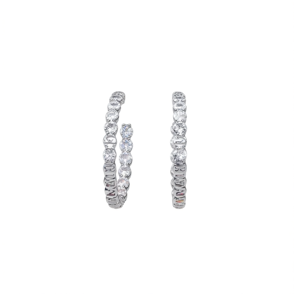 E2639 White Gold Hoop Earrings Round Zircon Channel Setting Women's Classic Party Fashion Jewelry