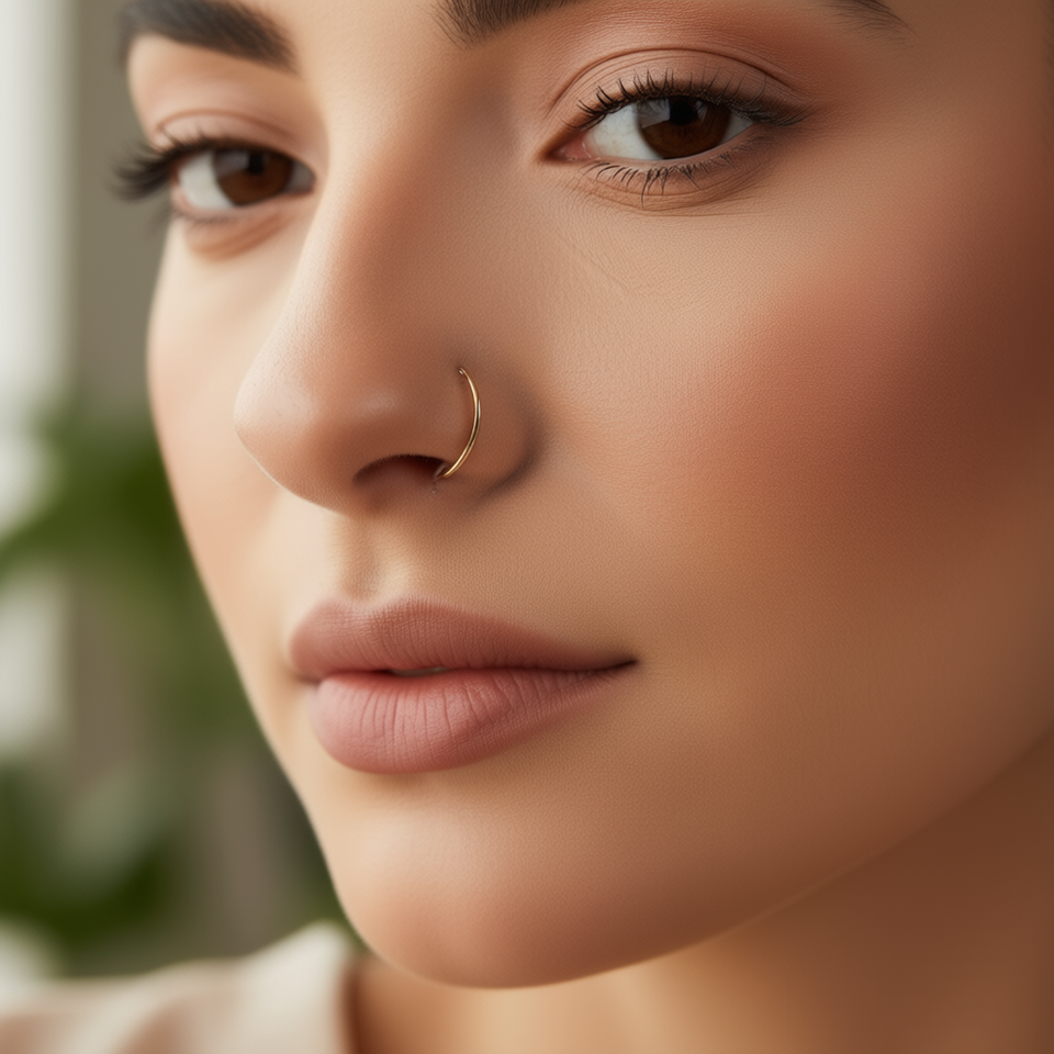 E2688 White Gold Plated Stainless Steel Nose Ring Hook Classic Style Internally Threaded Unisex Daily Wear Jewelry