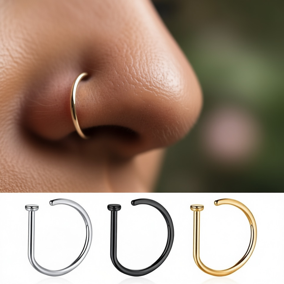 E2689 Anello per il Naso Placcato Oro in Acciaio Inossidabile, Gioiello Unisex Classico per Uso Quotidiano, Piercing