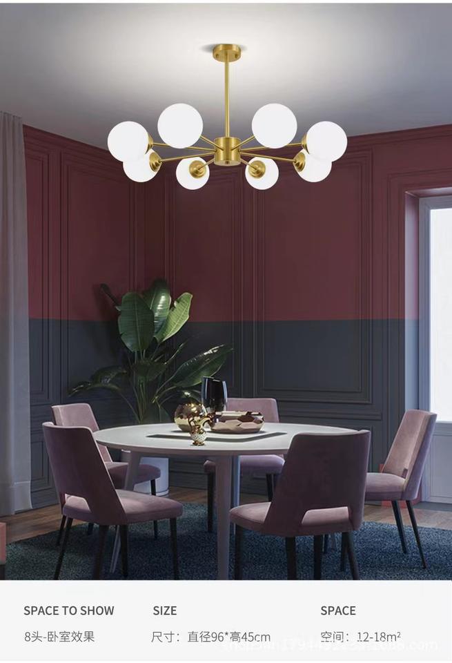 E27 Nordic Iron Restaurant Gold Chandelier Glass Ball Lamp Creative Led Ball Chandelier Hanging Lamp Pendant