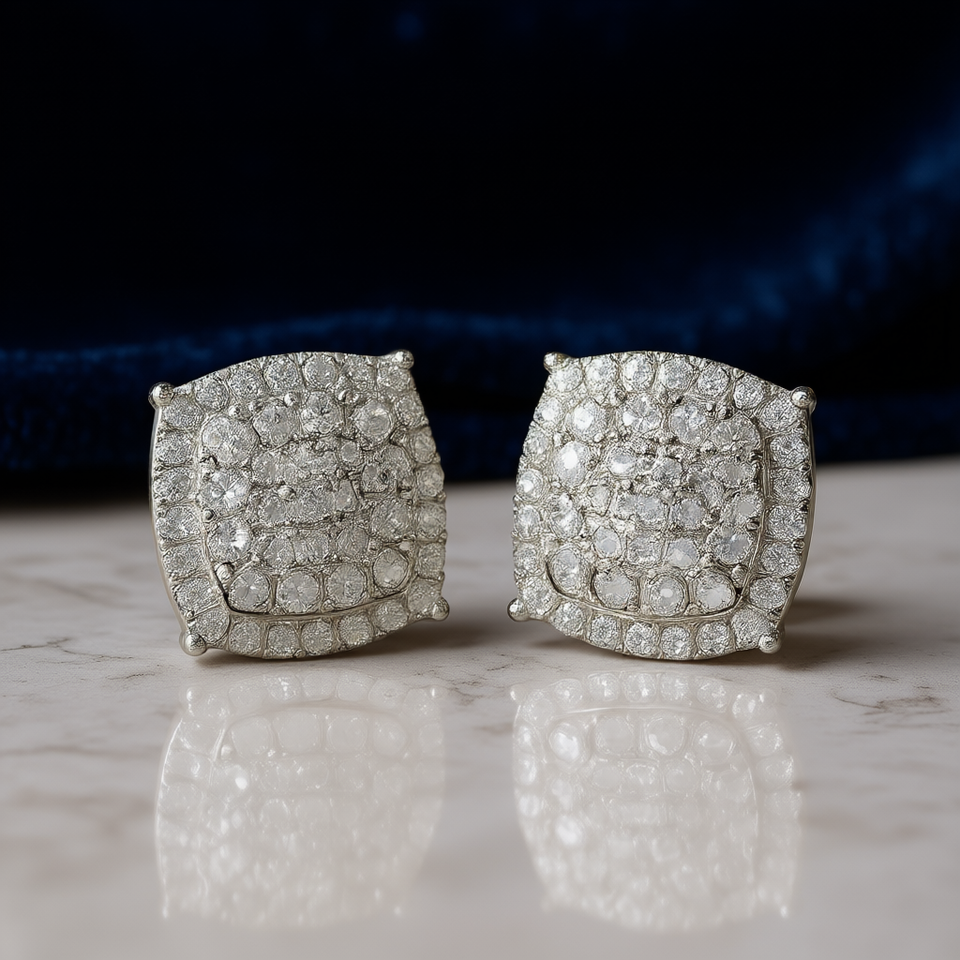 E2724 White Gold Diamond Earrings Round Brilliant Cut D Color Natural Women's Classic Style