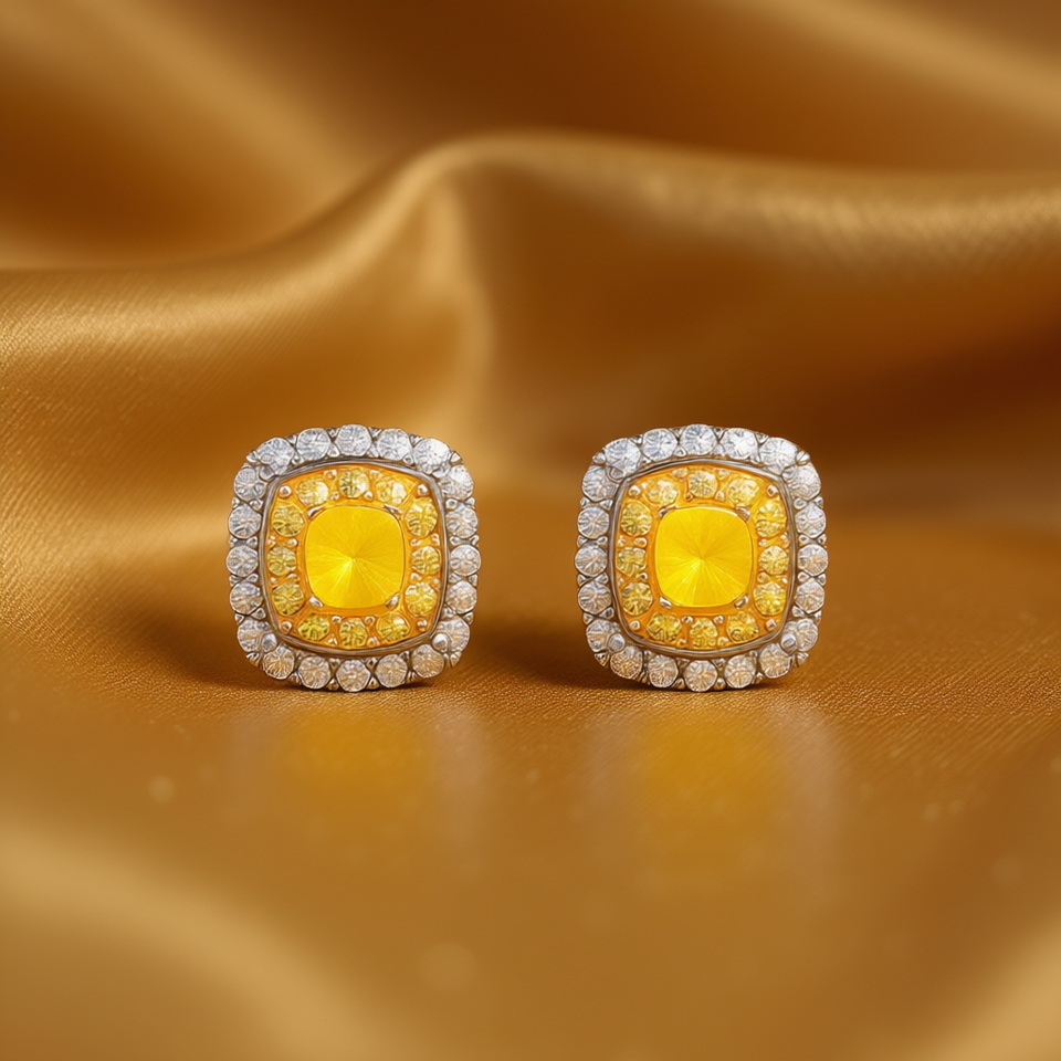 E2744 Yellow Stud Earrings Cushion Cut Geometric Bezel Setting Luxury Women's Fine Jewelry