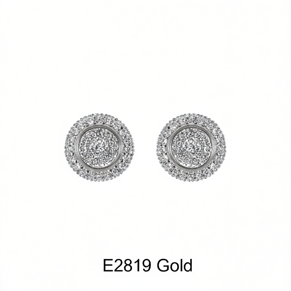 E2819 Gold Diamond Earrings Round Brilliant Cut Classic Women's Wedding Jewelry