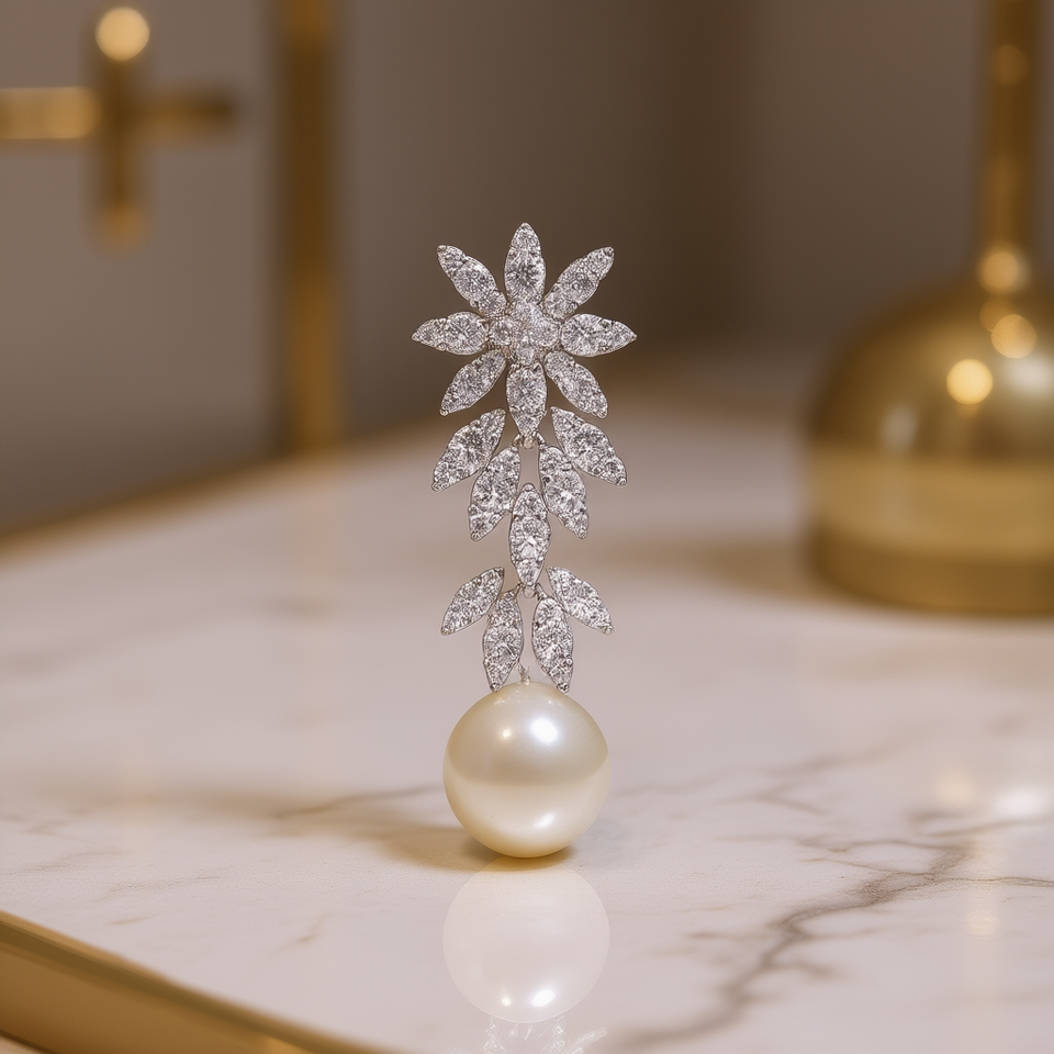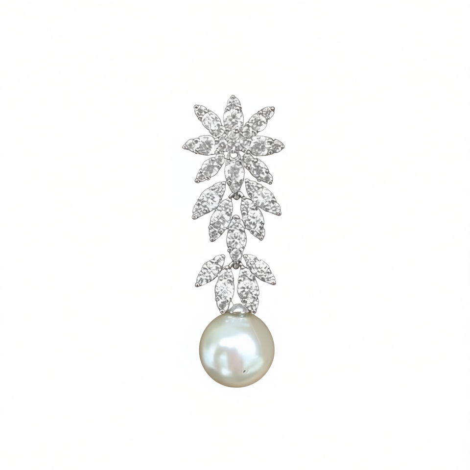 Orecchini Pendenti E2896 in Oro Bianco con Perla Coltivata AAA di Forma Rotonda, Stile Classico da Donna per Matrimoni, Oro 18K