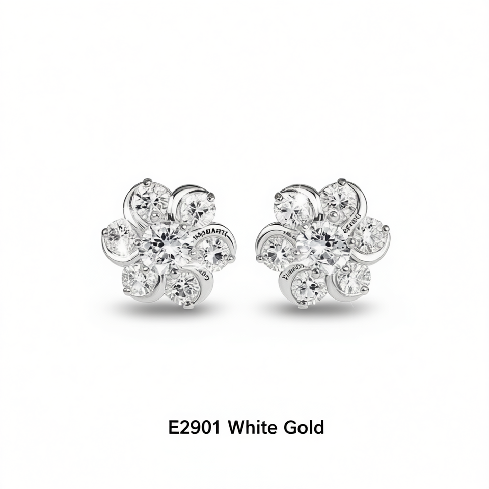 E2901 White Gold Diamond Earrings Round Brilliant Cut Natural Classic Women's Jewelry