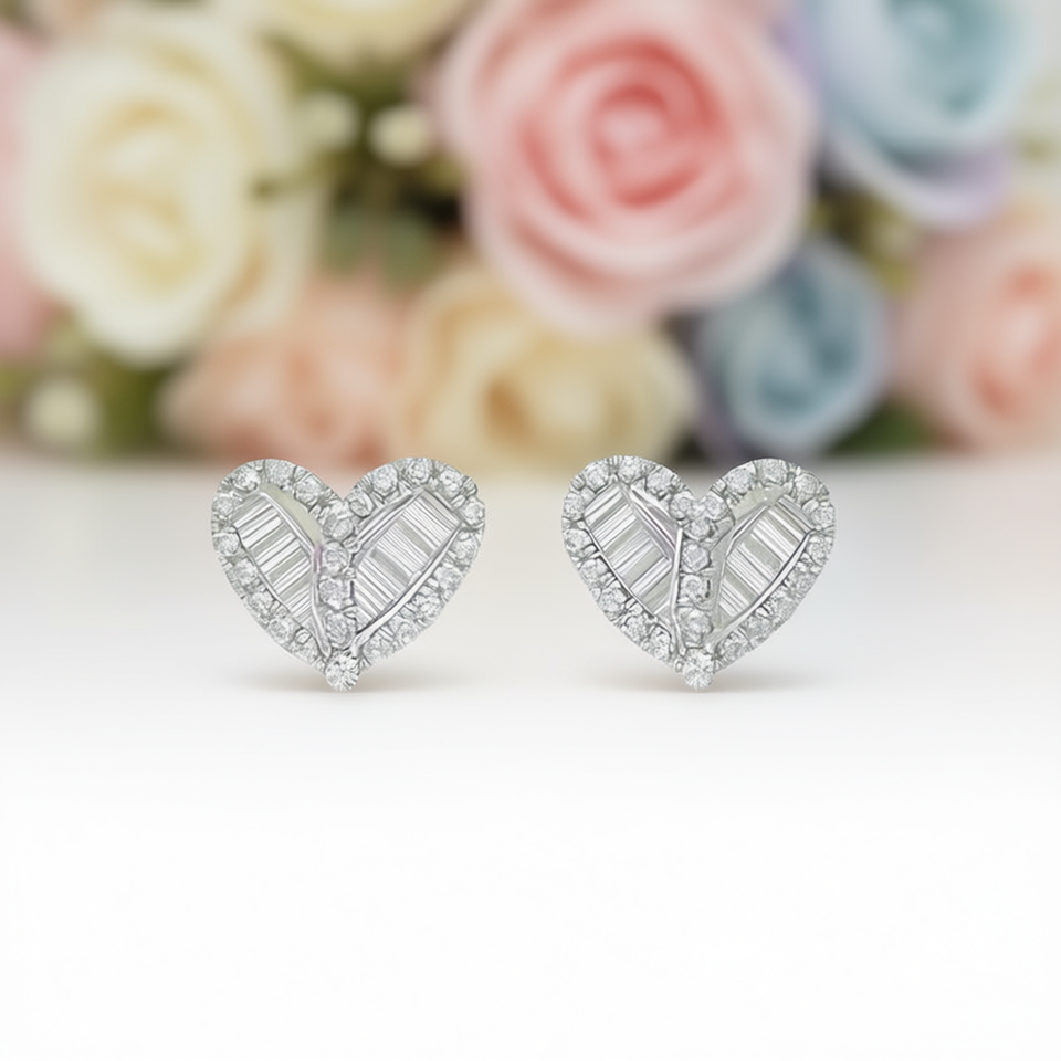 E2905 White Gold Heart Stud Earrings With Zircon Prong Setting For Women Romantic Fashion Jewelry Gift