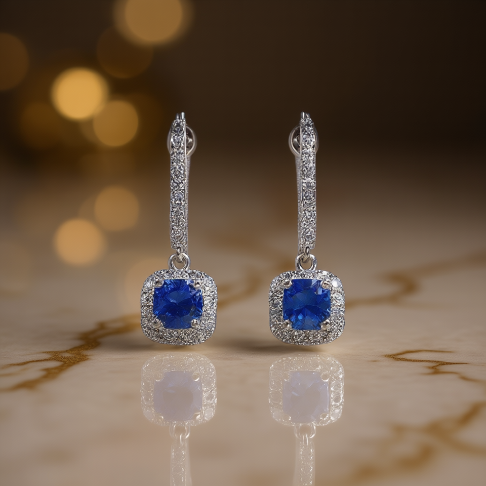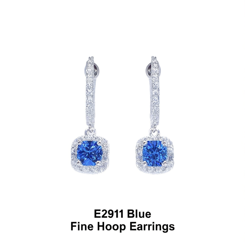 E2911 Blue Fine Hoop Earrings Silver Plated Princess Cut Square Claw Setting Women's Jewelry
