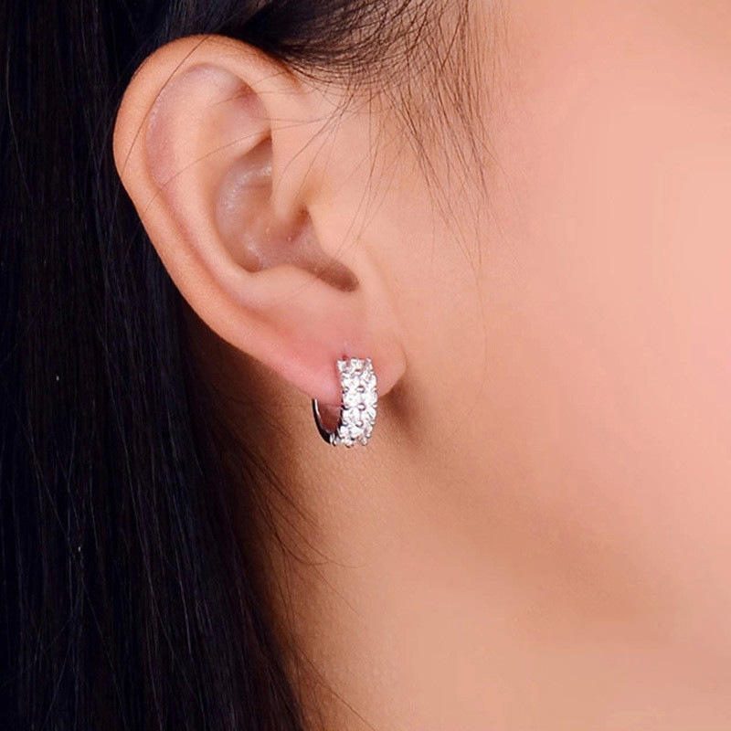 E2914 White Gold Huggie Earrings Crystal Rhinestone Claw Setting Women's Luxury Jewelry