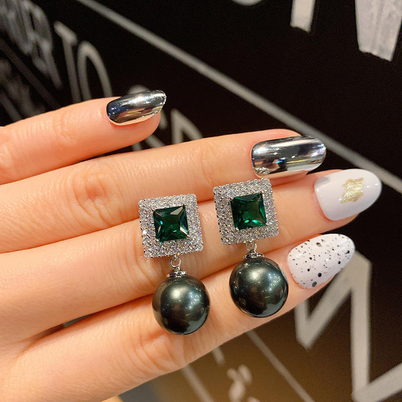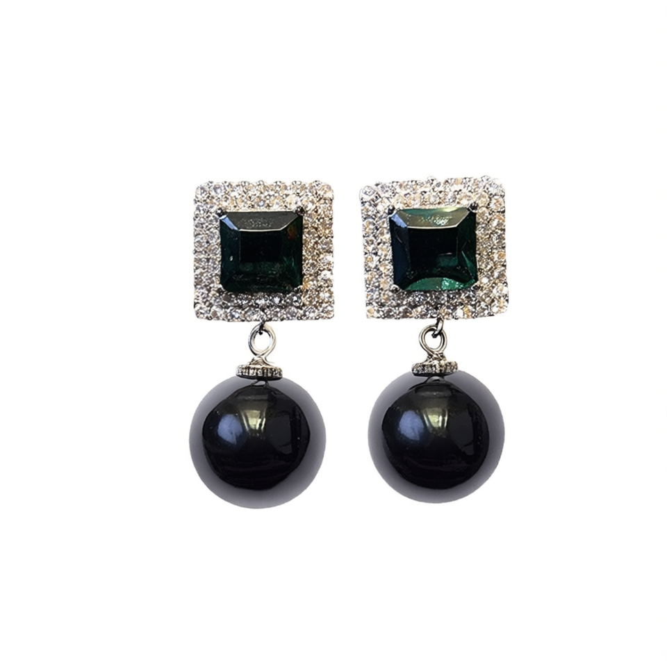 E2920 Luxury Drop Earrings Green Black Geometric Crystal Bezel Setting Women's Party Jewelry
