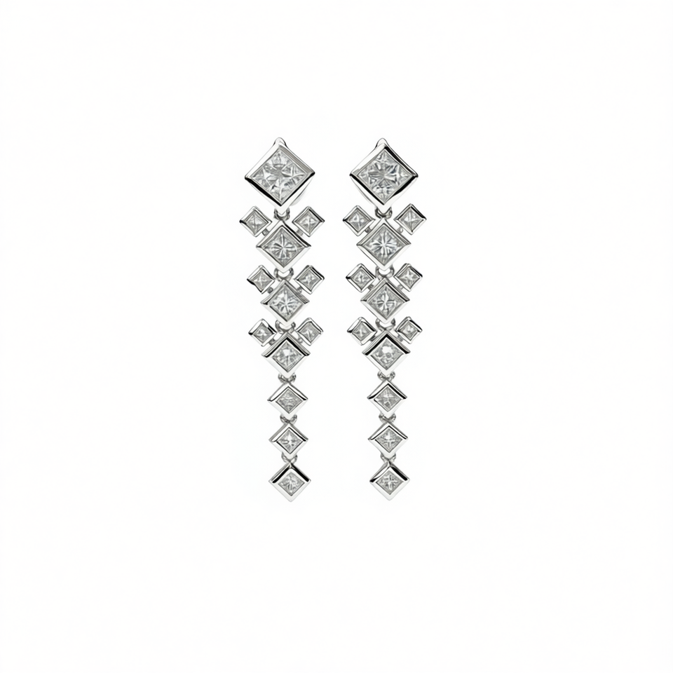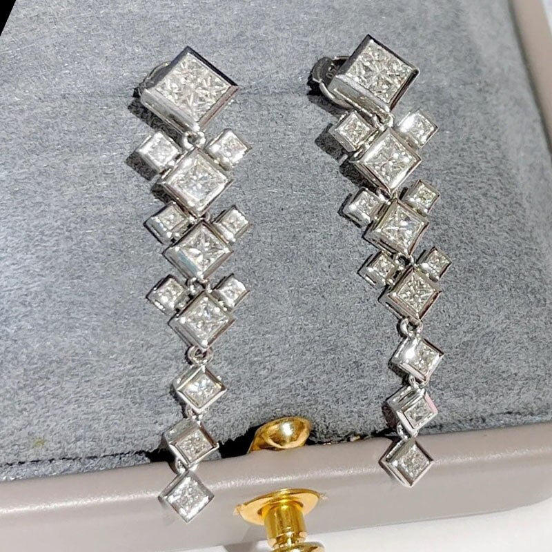 E2958 Orecchini con diamanti taglio principessa in oro bianco naturale, gioielli raffinati in stile classico da donna
