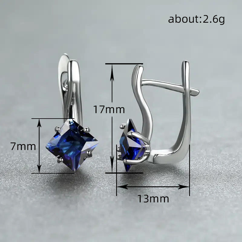 Orecchini a Perno E2969 in Cristallo di Quarzo Arcobaleno Blu, Montatura in Argento 925, Design Geometrico, Gioielli Classici da Donna per Uso Quotidiano
