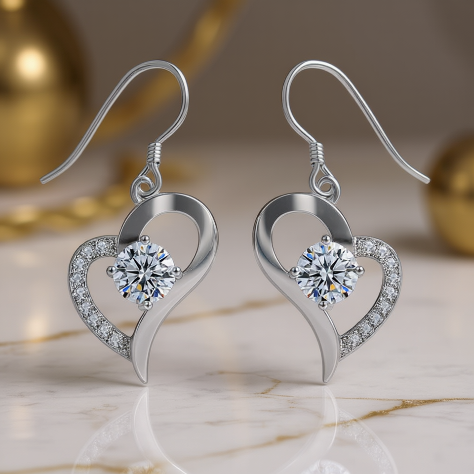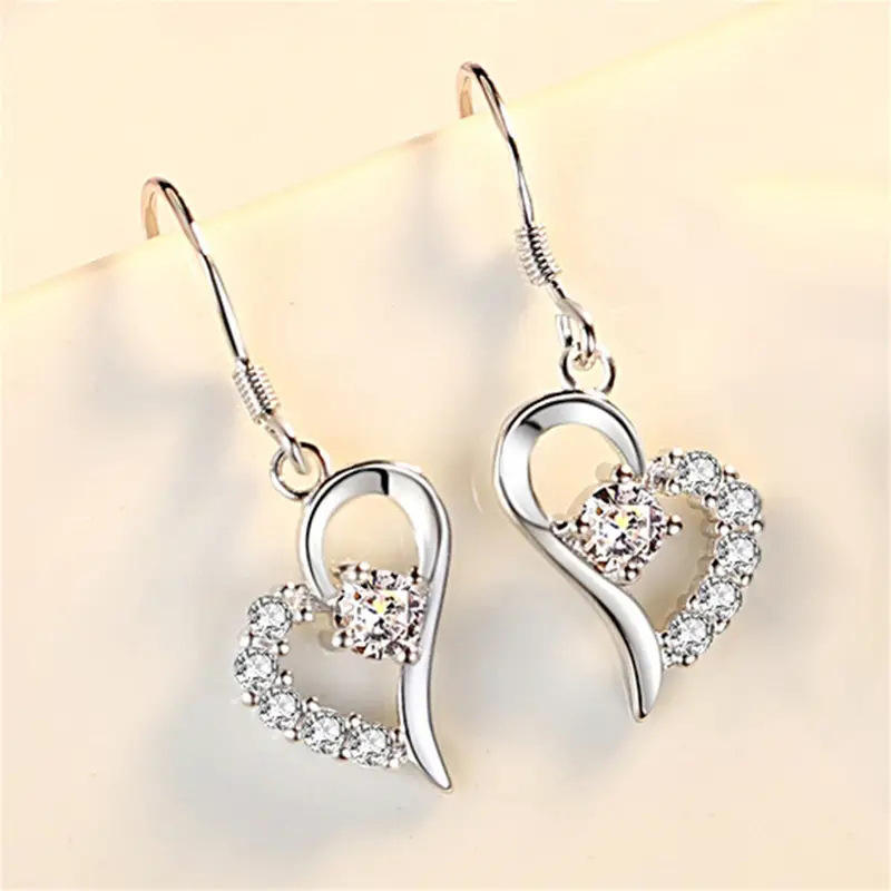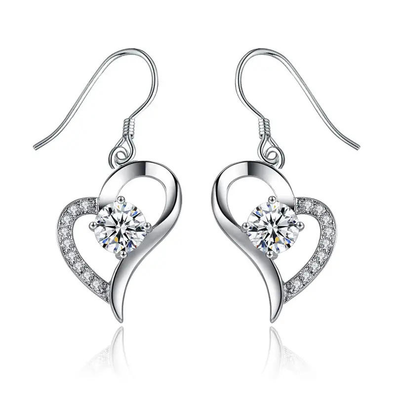 E2980 Orecchini in oro bianco con diamanti taglio brillante rotondo, stile romantico da sposa per donna