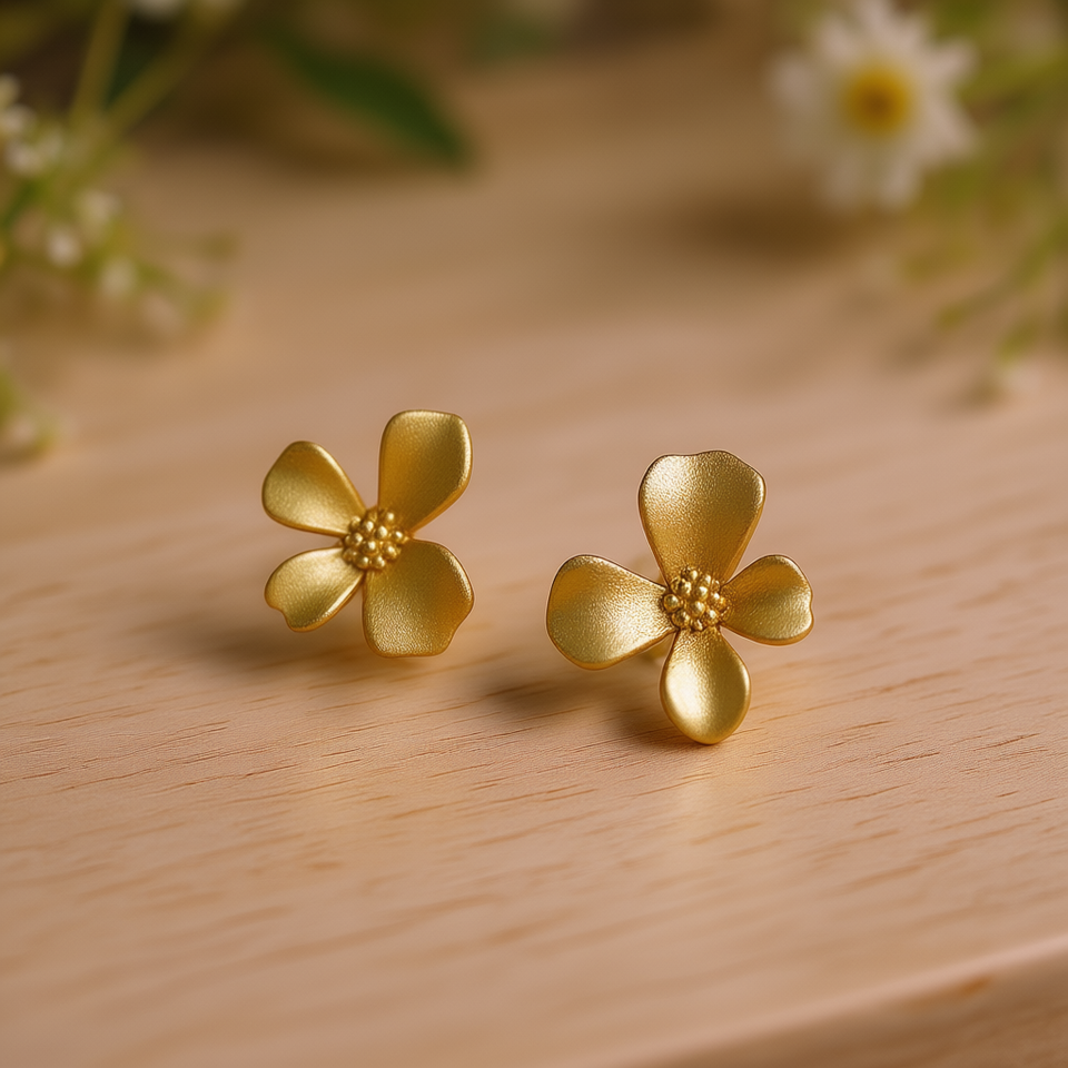 E2981 Gold Flower Stud Earrings For Women Fashion Jewelry Gold Plated Small Floral Design Elegant Everyday Wear Accessory
