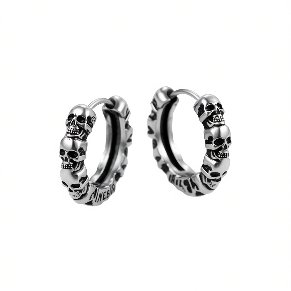 Orecchini a Cerchio Scheletro E3014 Placcati Oro Stile Punk Unisex Gioielli alla Moda in Lega