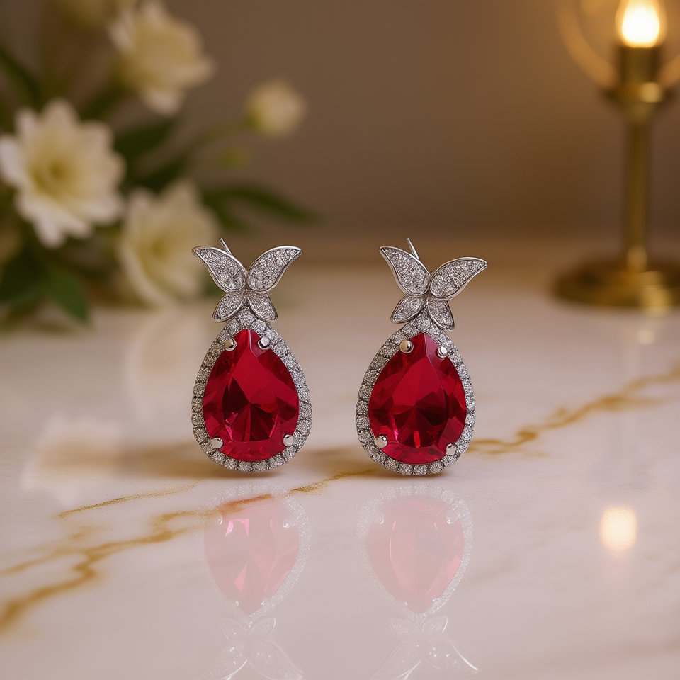 E3041 Orecchini pendenti con cristalli rossi a forma di farfalla con montatura a castone, gioielli di lusso da donna