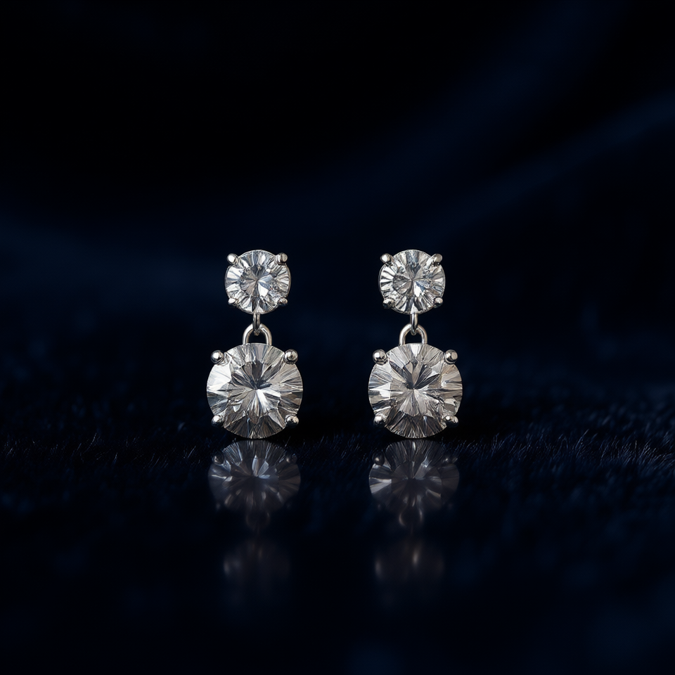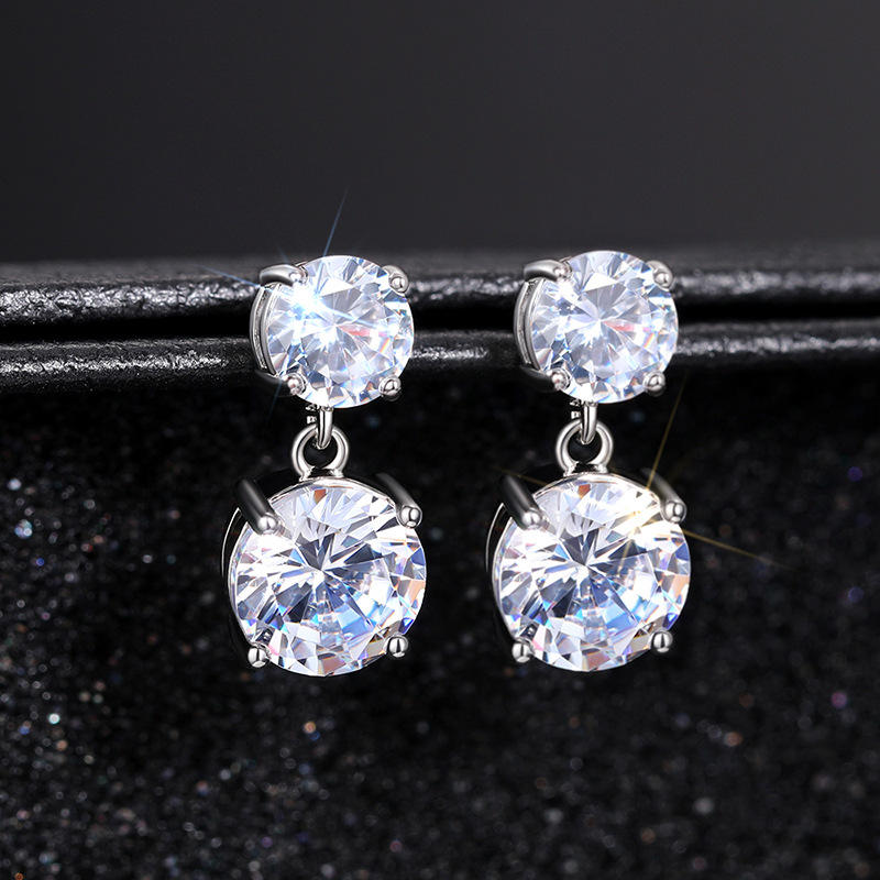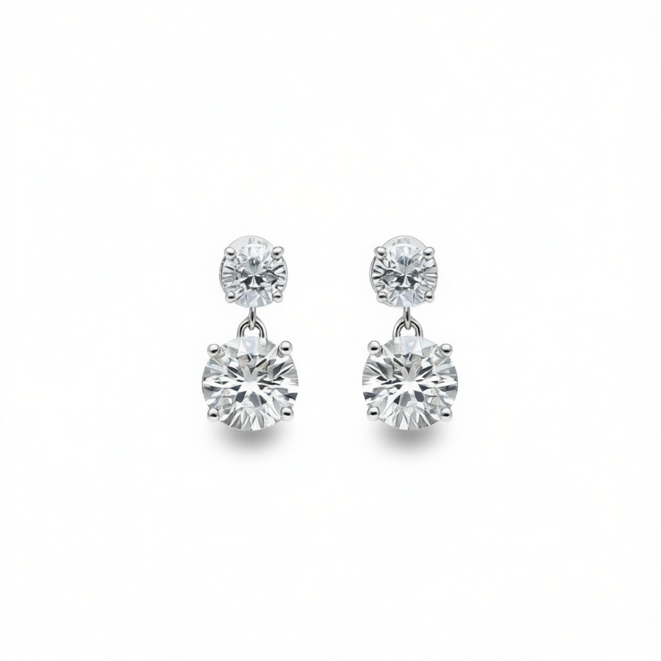 Orecchini Pendenti E3055 in Oro Bianco con Diamanti Taglio Brillante Rotondo, Montatura a Griffe, Gioielli Classici da Sposa per Donna