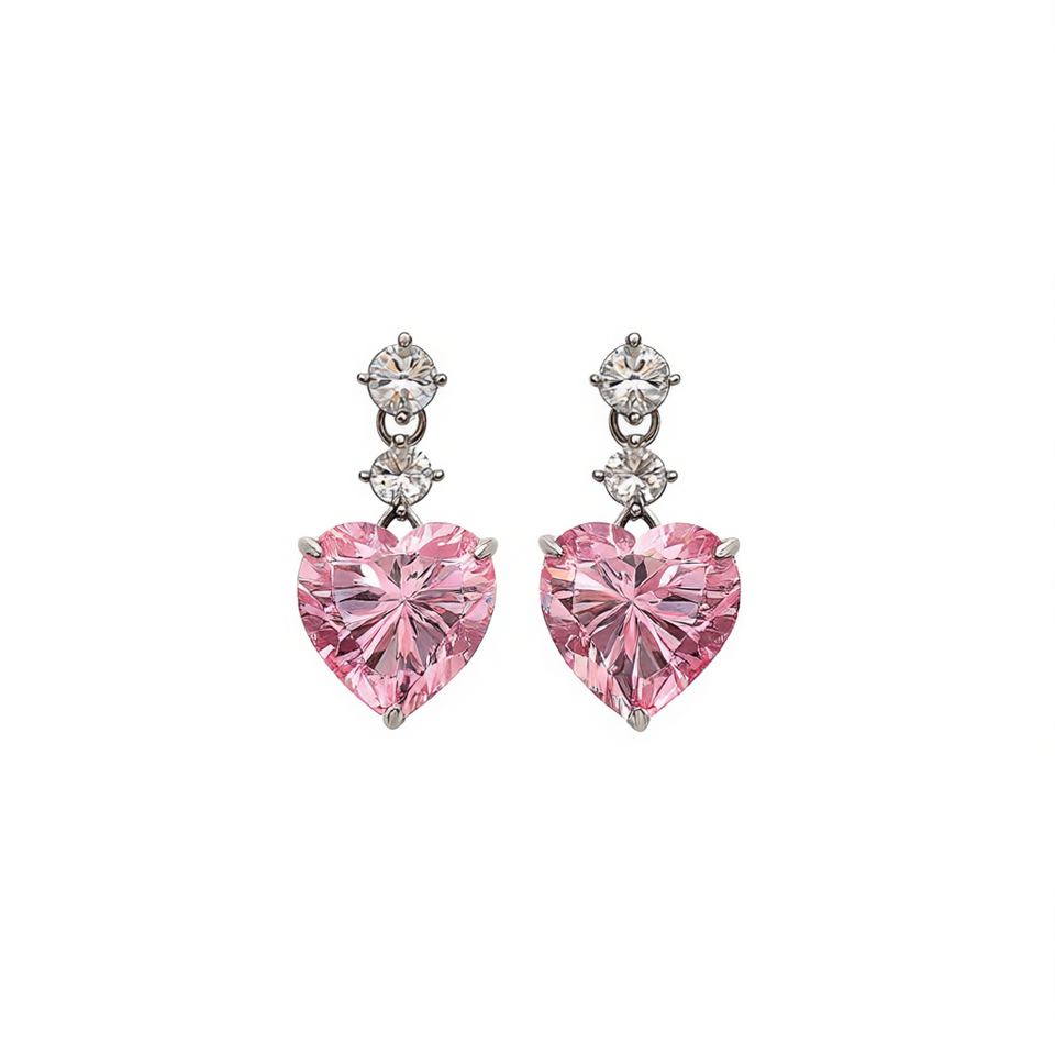 E3061 Pink Heart Crystal Drop Earrings Claw Setting Romantic Women's Wedding Jewelry